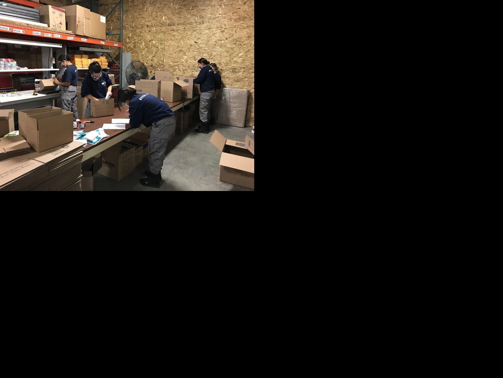Nine cadets packed over 250,000 cloth masks at the Fort Harrison Warehouse. They are working with the Montana Disaster and Emergency Services to earn community service hours in support of COVID-19. The masks will be delivered to the 305 school districts across the Treasure State to help support Montana's efforts to keep schools open.