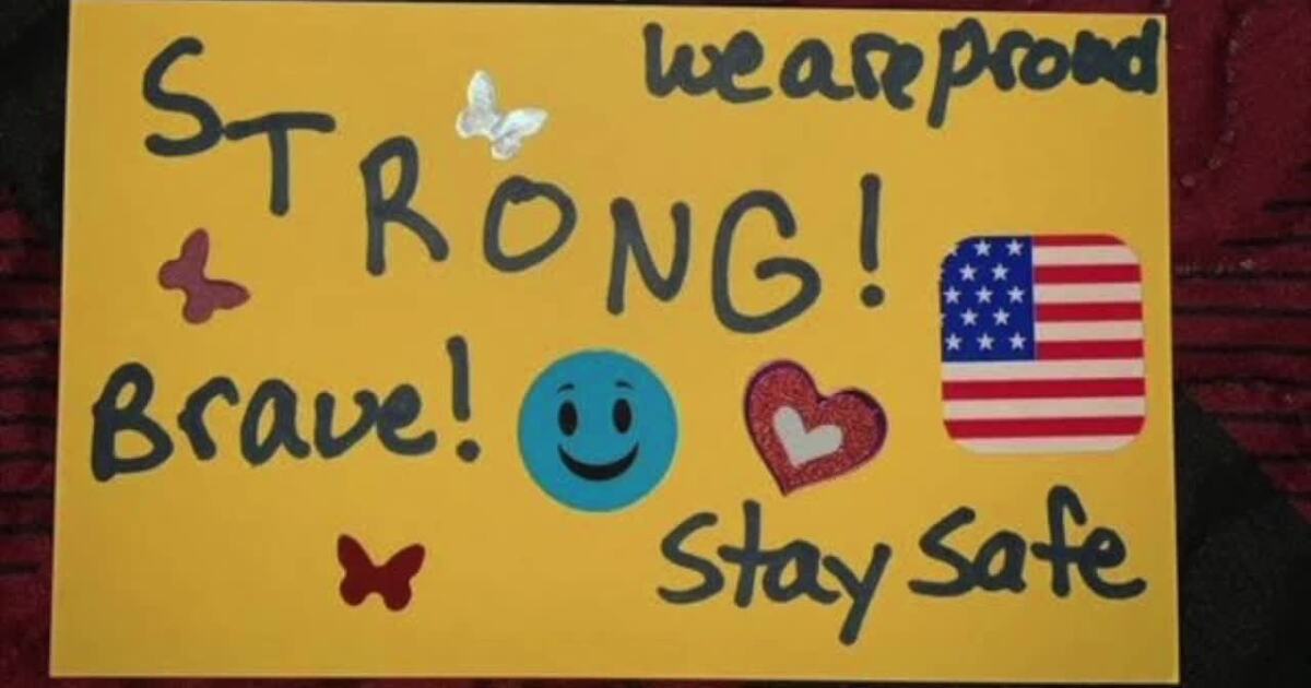 "I wrote thanks for your service and all your sacrifices." Harris wrote. "I wrote stay safe and I decorated it with blue hearts."